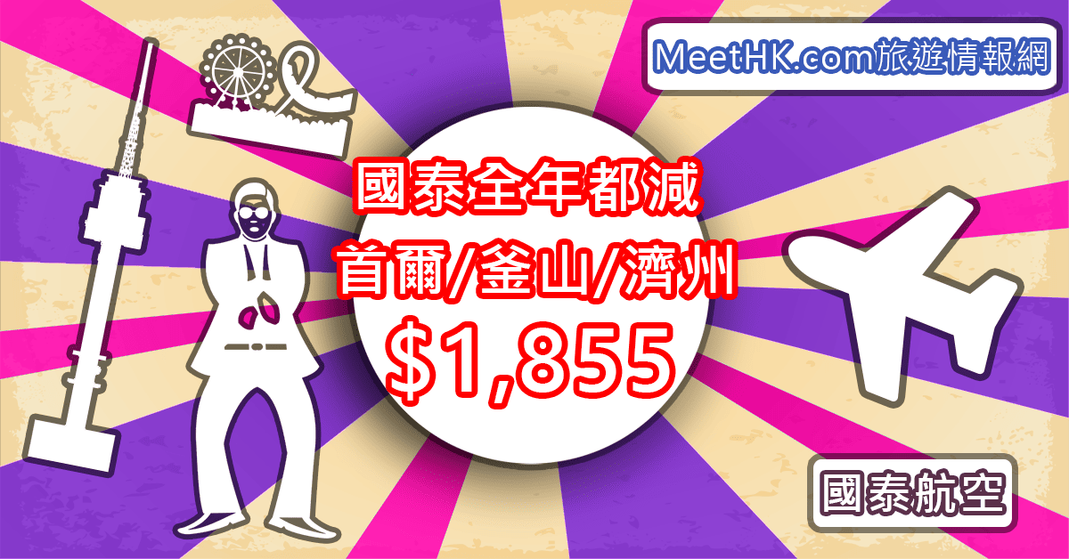 抵呀!國泰全年都減!12月29日前出發!香港往返首爾、釜山、濟州只需$1,855 – 國泰/港龍航空 (優惠至6月30日)