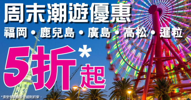 周末半價優惠!香港飛福岡/鹿兒島/廣島/高松單程只需$399,暹粒$299 – HK Express (優惠至6月5日)