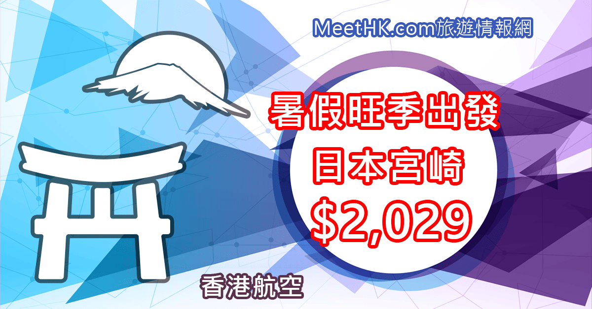 暑假旺季出發!8月24日前出發!包20kg行李!香港往返日本宮崎只需$2,029 – 香港航空 (優惠至8月24日)