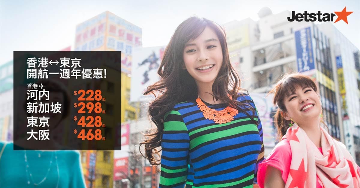 明早10時開賣!明年3月7日前出發!香港飛東京單程只需$428,大阪$468 – Jetstar (優惠至6月8日)