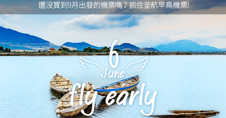 釜山航空會係星期二早上10點推出左9月飛釜山早鳥優惠