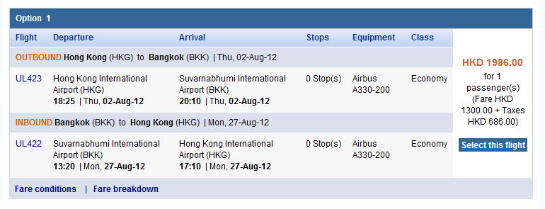 不過斯里蘭卡航空香港往返曼谷航缐只係逢星期一、四、六營運