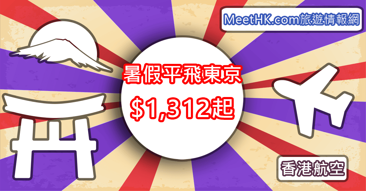暑假平飛東京!包20kg行李!香港往返東京只需$1,312起 – 香港航空 (優惠至8月24日)