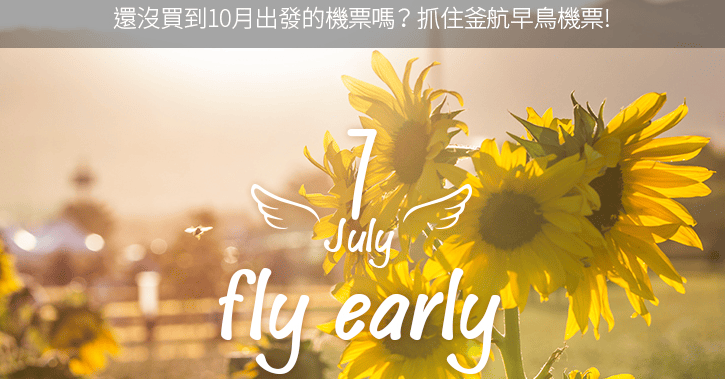 釜山航空會係聽朝10點推出左10月飛釜山早鳥優惠