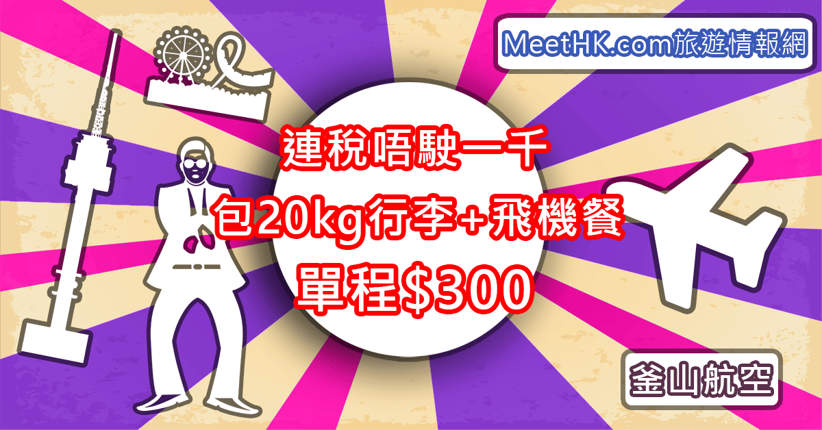 抵呀!連稅唔駛一千!包20kg寄艙行李+飛機餐!明早10時開搶!香港/澳門飛釜山單程只需$300 – 釜山航空 (優惠至7月15日3pm)