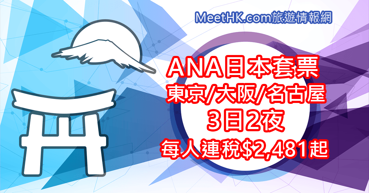 ANA東京、大阪、名古屋3日2夜套票每人連稅只需$2,481起,已包機票、酒店同稅費