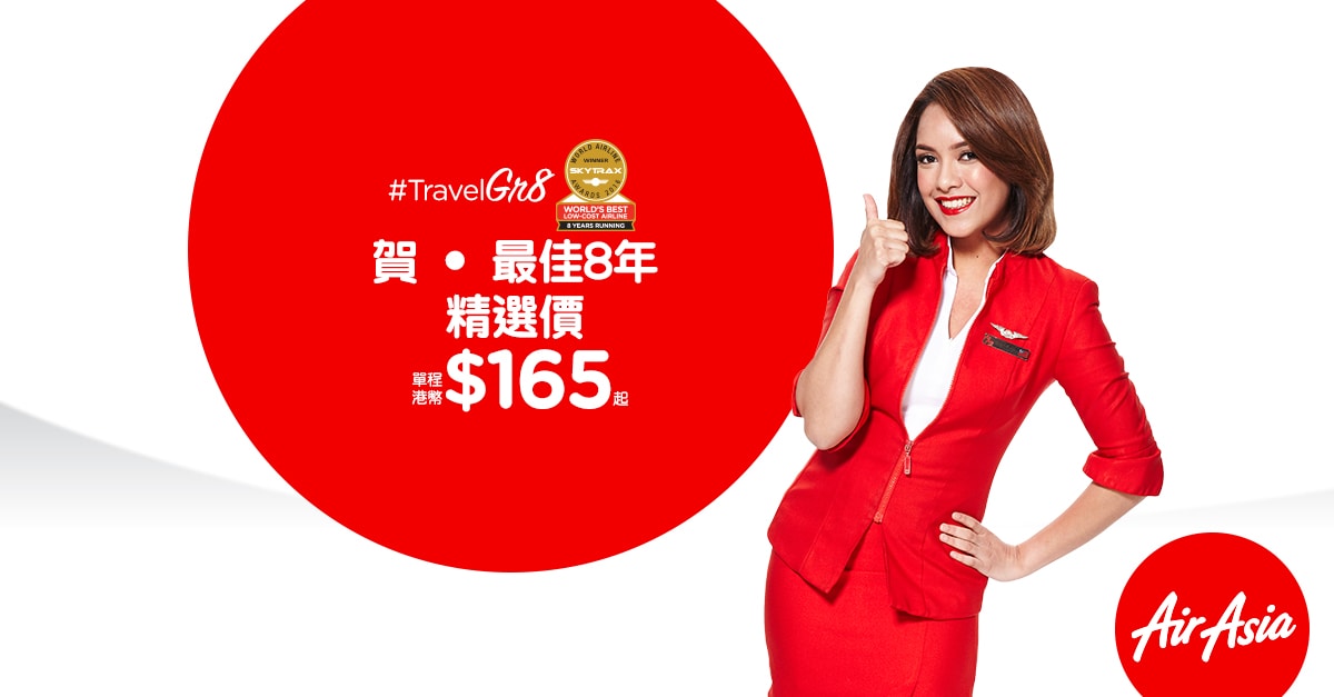 嘩!AirAsia慶祝連續8年都被Skytrax評為全球最佳低成本航空,今日推出左震撼優惠