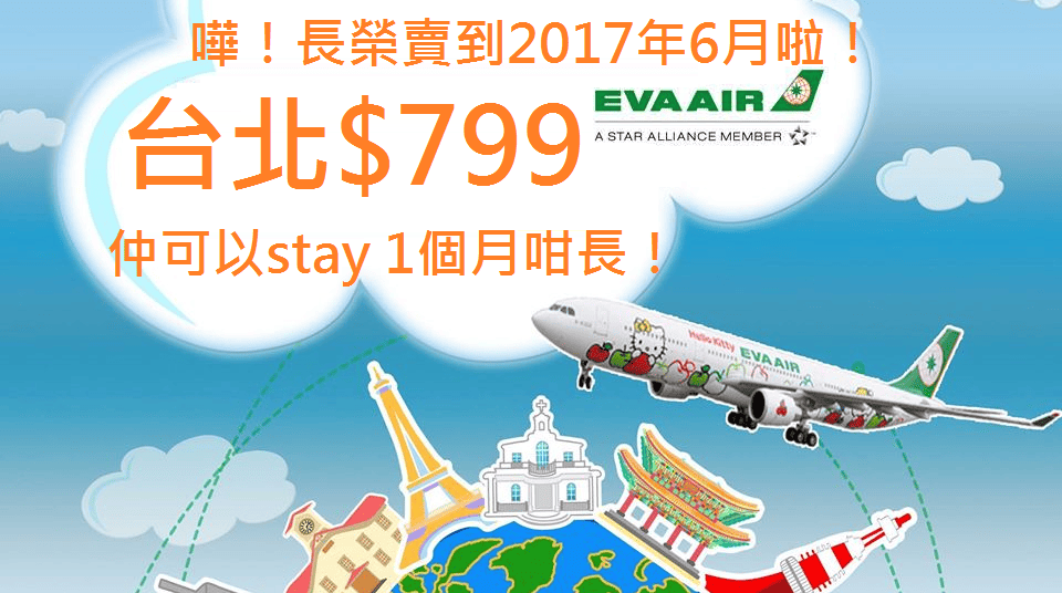 嘩!即買!長榮賣到17年6月啦!香港往返台北只需$799,仲可以stay 1個月咁長! – 長榮航空
