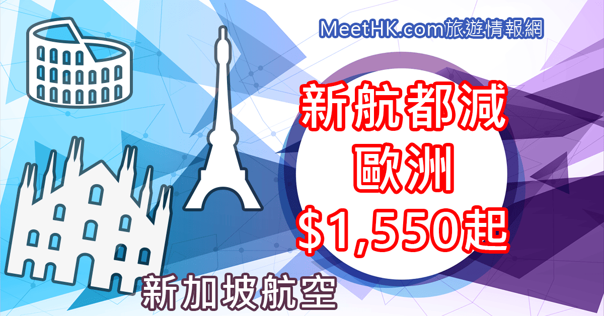 新航都減!明年3月31日前出發!香港往返歐洲各地只需$1,550起 – 新加坡航空 (優惠至7月26日)
