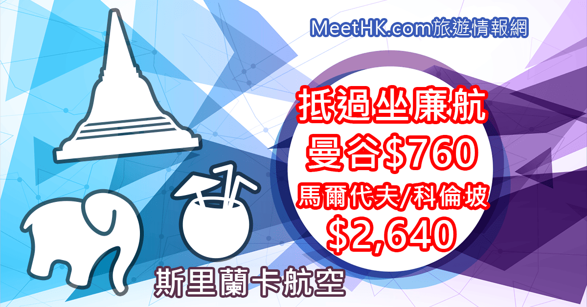 抵過坐廉航!12月15日前出發!香港往返曼谷只需$760,馬爾代夫/科倫坡$2,640 – 斯里蘭卡航空 (優惠至7月31日)