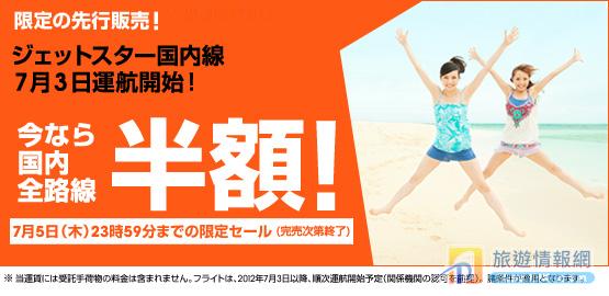 捷星日本為左慶祝佢地國內線聽日開航,佢地由今日到7月5日香港時間晚上11:59,全線機票半價優惠