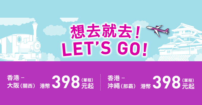 香港飛大阪、沖繩單程只需$398起
