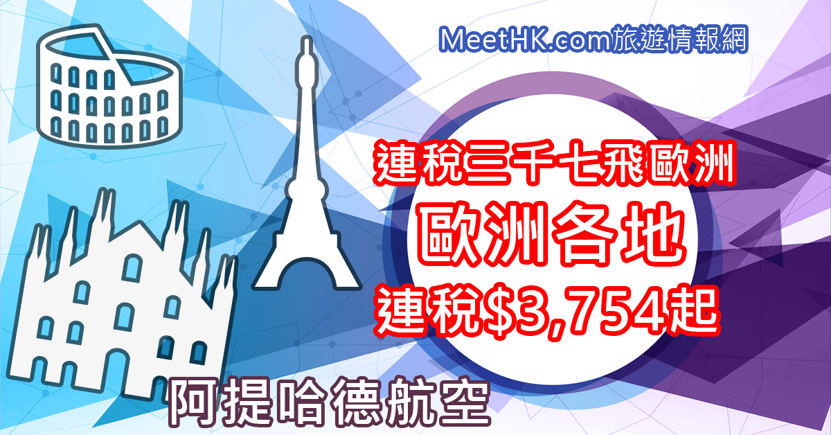 連稅三千七飛歐洲!明年3月31日前出發!香港往返歐洲各地連稅只需$3,754起 – 阿提哈德航空 (優惠至7月31日)