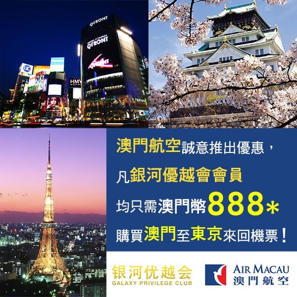 尋晚網友 Xiao Yu Sally 話左個勁抵既優惠俾我地知,澳門航空同銀河優越會合作推出左一個勁抵既東京機票優惠