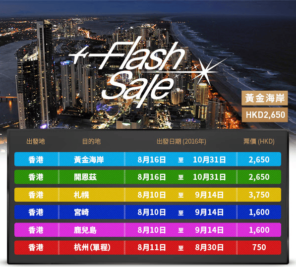 澳洲抵呀!早上10時開賣!暑假都有!鹿兒島/宮崎$1,600,黄金海岸/開恩茲$2,650,札幌$3,750 – 香港航空 (優惠至8月3日)