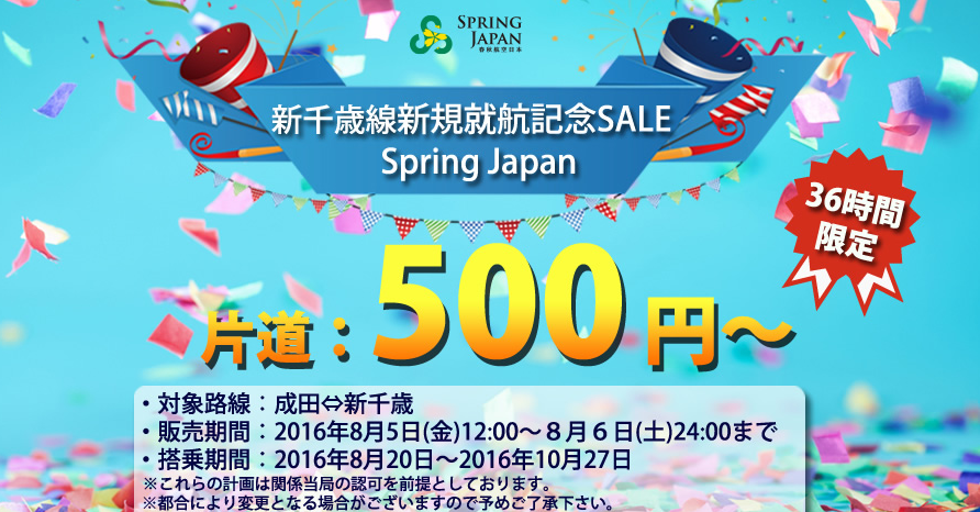 平到震!新航線!東京飛札幌單程只需500円(約$38) – Spring Japan 春秋航空日本 (優惠至8月6日)
