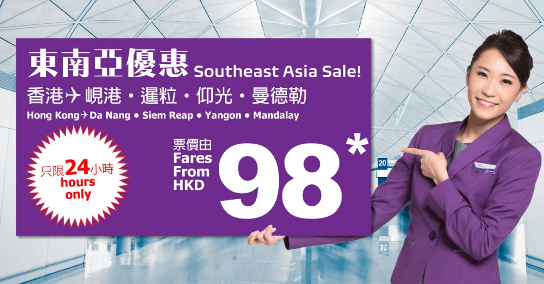 又黎$98!HK Express 會係今晚12點推出限時24小時單程$98優惠!