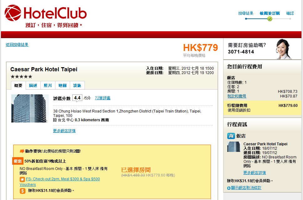 24小時限時促銷!50%off 台北凱撒大飯店每晩只需$799起(已包含所有稅金) – HotelClub (優惠延長至7月8日上午9時)