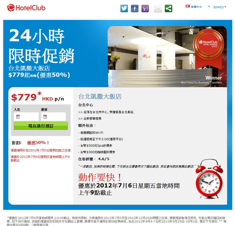 HotelClub 又有新既24小時限時促銷,今次做優惠既酒店係位於港人最愛旅遊地 – 台北