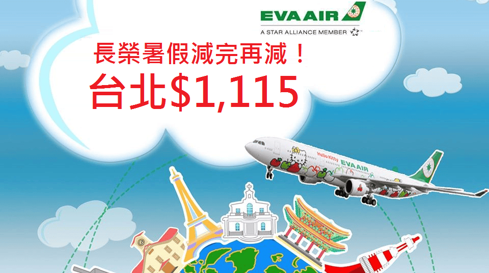 長榮暑假減完再減!8月23日前出發!香港往返台北只需$1,115 – 長榮航空 (優惠至8月23日)