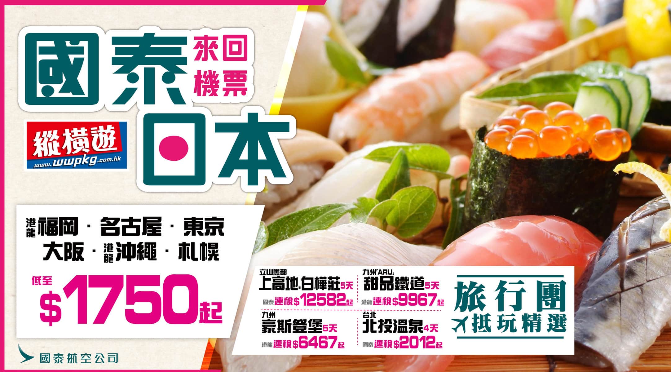 國泰日本全線減!國泰港龍飛日本各地只需$1,750起!另台北.北投春天溫泉旅行團$1,499起 – 縱橫遊 WWPKG (優惠至8月16日)
