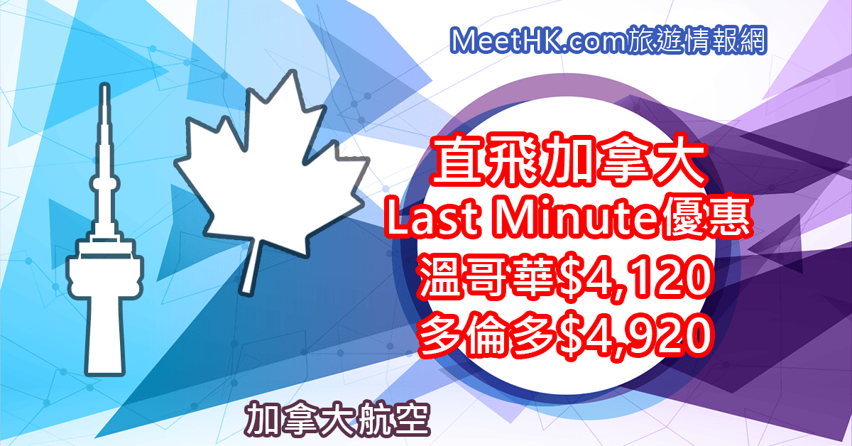 直飛加拿大Last Minute優惠!香港直航往返溫哥華只需$4,120,多倫多$4,920 – 加拿大航空 (優惠至8月13日)