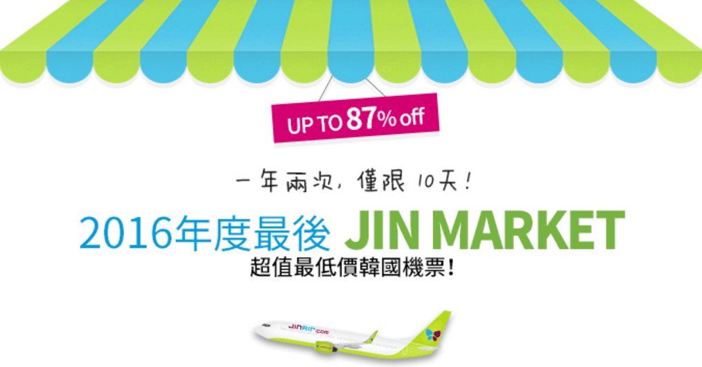 星期二早上9時開賣!Big Sale!明年3月25日前出發!香港/澳門往返首爾低至1.3折 – 真航空 Jin Air (優惠至8月25日)