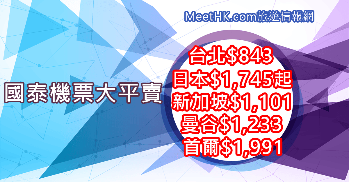 國泰/港龍機票大平賣!台北/高雄/台中$843,日本各地$1,745起,新加坡$1,101,曼谷$1,233,首爾$1,991,倫敦$4,595,溫哥華$5,333 – Wefly.com.hk (優惠至8月21日)