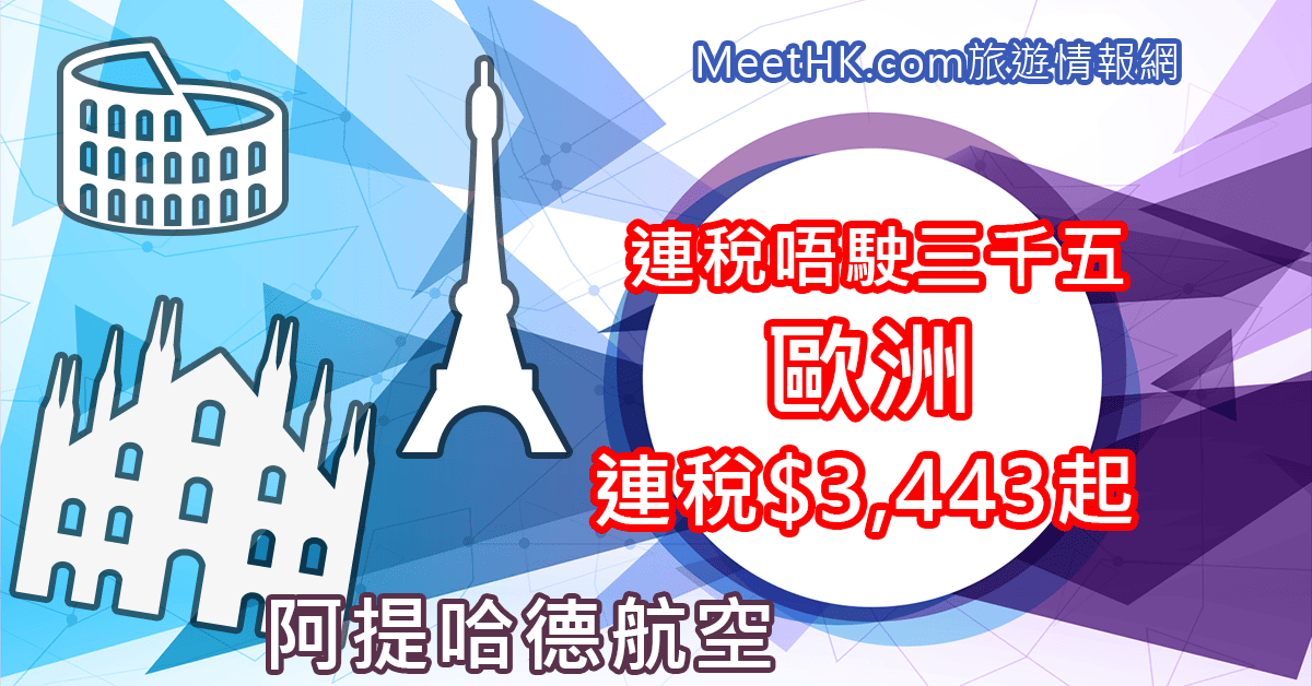 抵呀!歐洲連稅唔駛三千五!明年3月31日前出發!香港往返歐洲各地連稅只需$3,443起 – 阿提哈德航空 (優惠至8月21日)