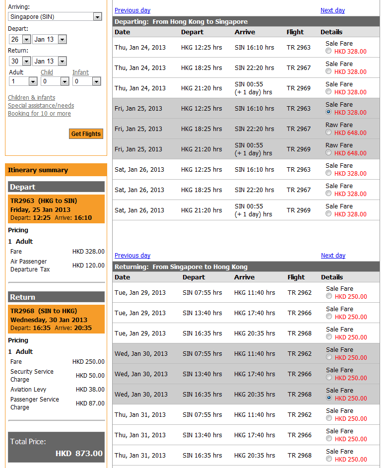 好似今日虎航 Tiger Airways推出左個限時三天新優惠,香港往返新加坡去程只需$328 回程只需$250 來回連稅只需$873,好抵玩