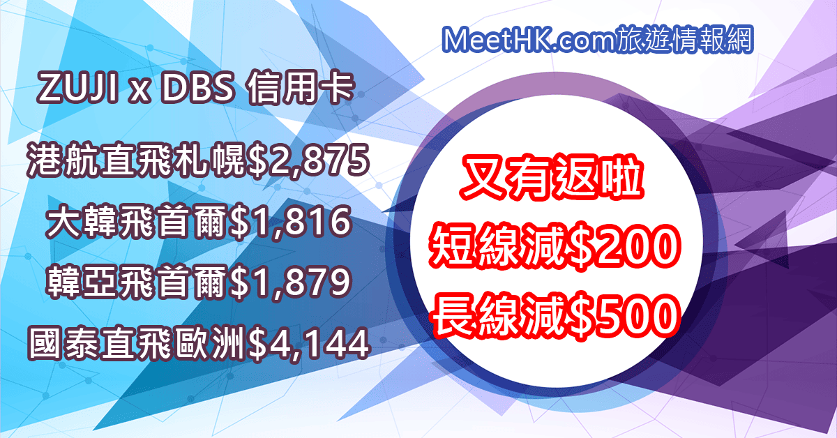 又有返啦!Zuji HK X DBS 信用卡今日加推機票或套票減高達$500優惠