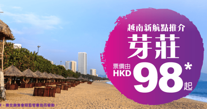 抵呀!新航線!香港飛越南芽莊單程只需$89 – HK Express (優惠至8月30日)