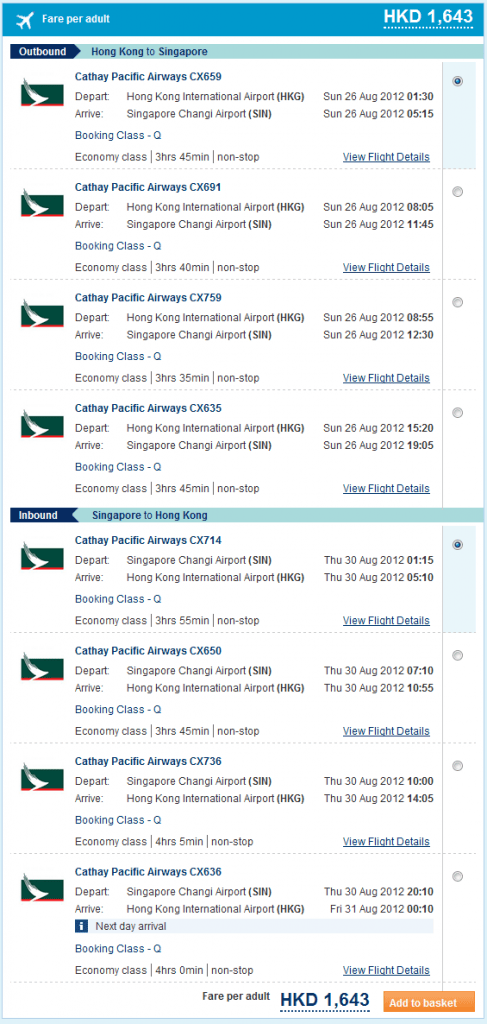 同新航最大分別係新航去程同回程航班任你揀,而國泰就有一些限制,不過選擇都可以,早去晚返都得