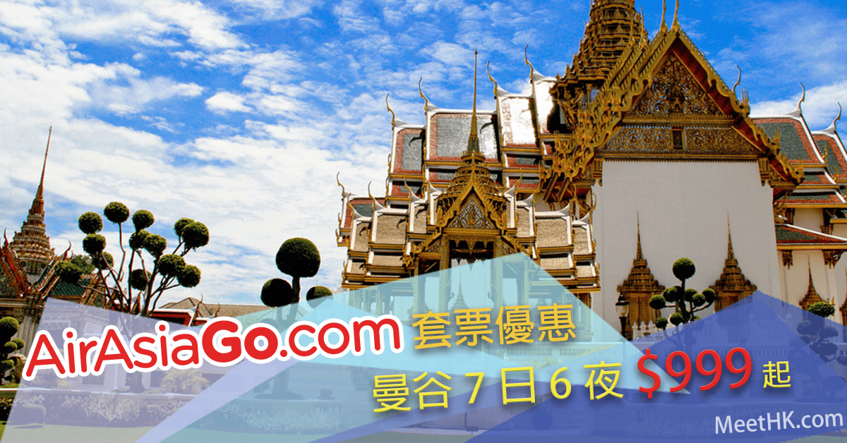 最後30小時加推!抵玩曼谷套票出發期延長至12月!香港飛曼谷7日6夜套票連稅每人只需$999起 – AirAsiaGo (優惠至9月2日)
