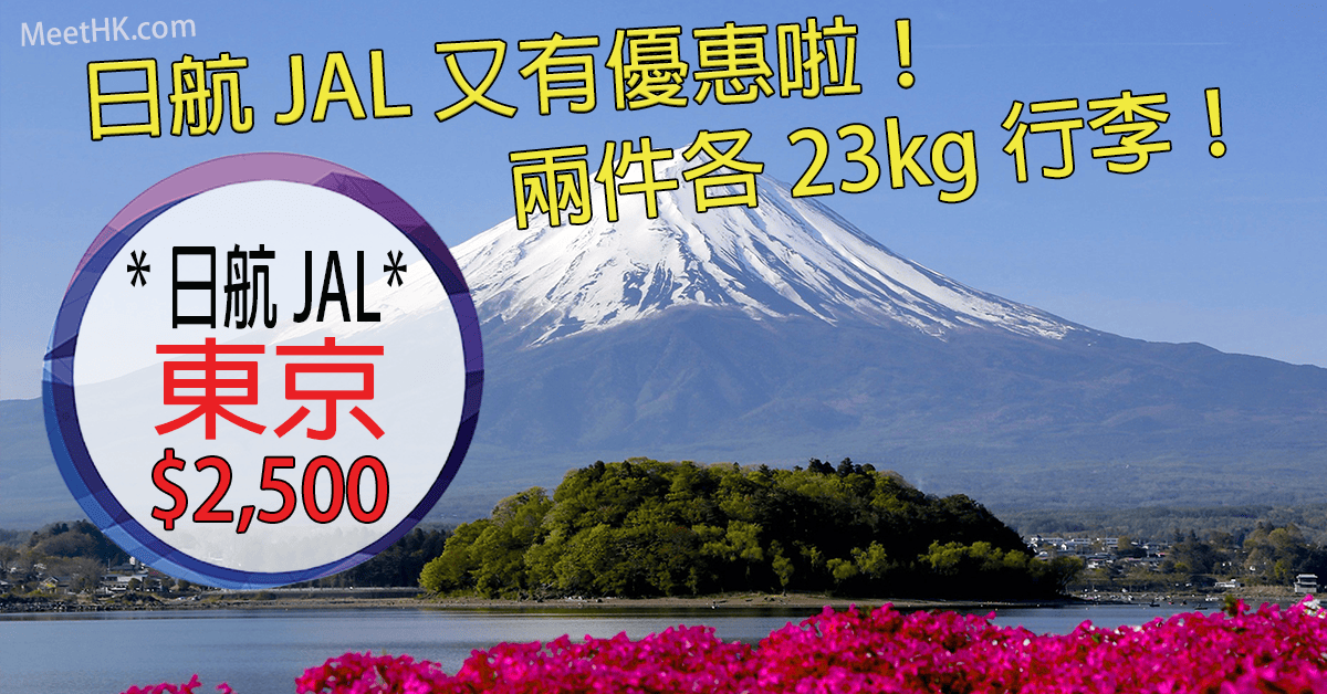 日航JAL又有優惠啦!3月31日前出發!兩件各23kg行李!香港往返東京只需$2,500、札幌$3,550 – 日本航空 (優惠至9月13日)
