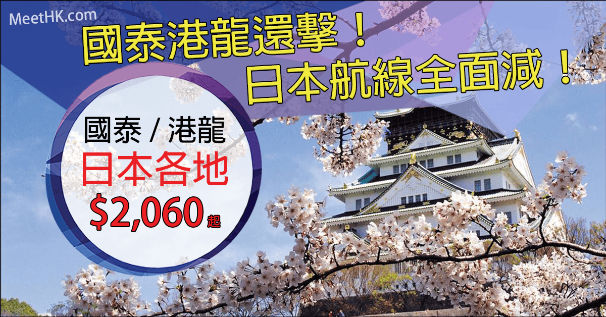 國泰還擊!明年6月30日前出發!沖繩$2,060,東京/大阪/名古屋/福岡$2,760,札幌$4,320 – 國泰/港龍航空 (優惠至10月1日)