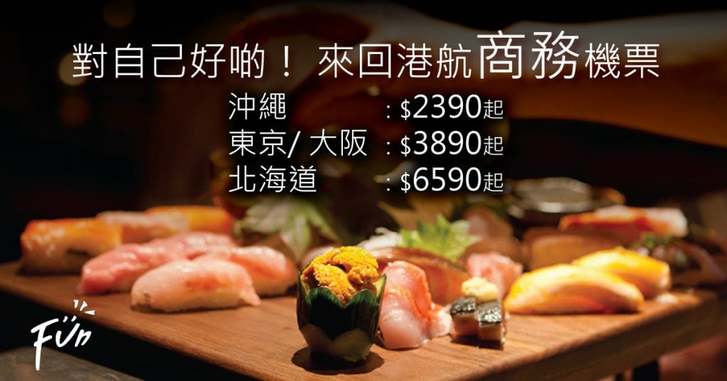 坐Business Class!香港往返沖繩只需$2,390起、東京/大阪$3,890起、札幌$6,590起;