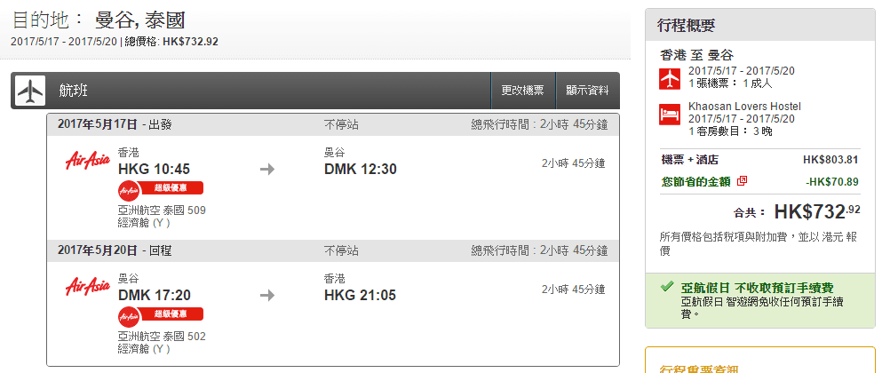 我地check過如果揀一些最平既酒店,曼谷4日3夜套票每人連稅只係$732起,仲可以揀早機去晚機返添