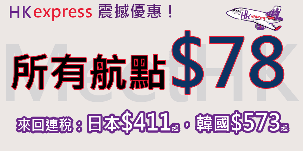 嘩!必搶!單程$78!今晚12點開搶!所有航點單程只需$78 – HK Express (優惠至9月12日)