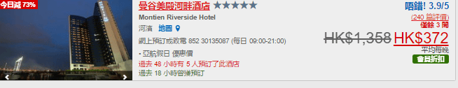 *優惠會顯示於左上角,呢間曼谷5星酒店就由$1,358減到$372,會員減到2.7折!