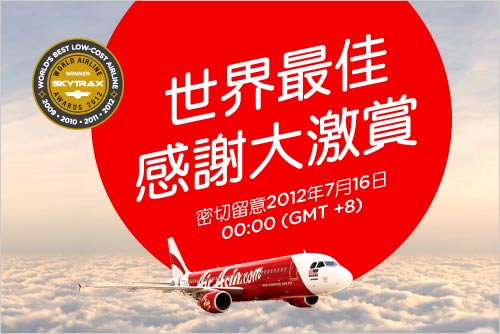 AirAsia 為左慶祝佢地連績四年榮獲Skytrax頒發既 – 世界最佳低成本航空公司 ,將會係今晚凌晨(7月16