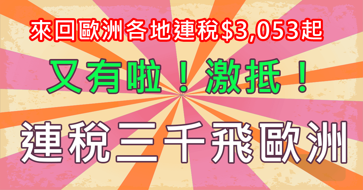 另一種玩法,香港來回歐洲各地連稅只需$3,062起