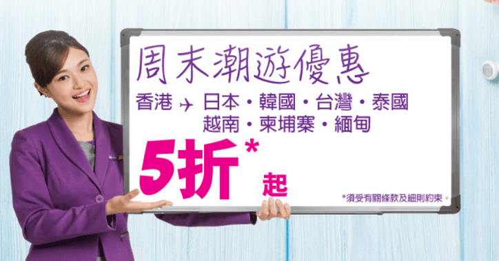周末半價優惠!香港飛台中/東南亞單程$164起,日本各地$299起,首爾$299 – HK Express (優惠至9月18日)