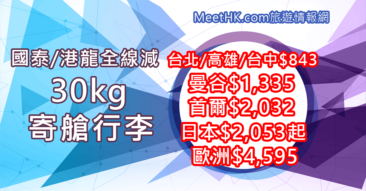 國泰/港龍行李全面升級至30kg!台北/高雄/台中$843,曼谷$1,335,首爾$2,032,日本$2,053起,峇里島$2,155,歐洲$4,595,三藩市/洛杉磯$4,041 – Wefly.com.hk (優惠至9月25日)