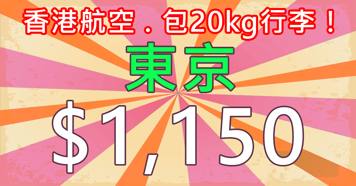 抵呀!$1,150飛東京!包20kg行李!香港往返東京只需$1,150 – 香港航空