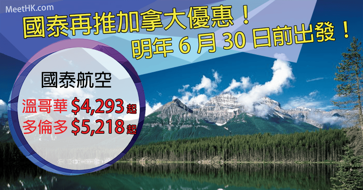 抵呀!國泰再推加拿大優惠!明年6月30日前出發!香港往返溫哥華只需$4,293,多倫多$5,218 – 國泰航空 (優惠至10月31日)