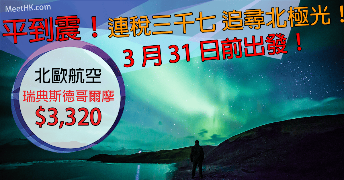 平到震!連稅三千七追尋北極光!3月31日前出發!香港直航往返瑞典斯德哥爾摩只需$3,320 – 北歐航空 (優惠至9月25日)
