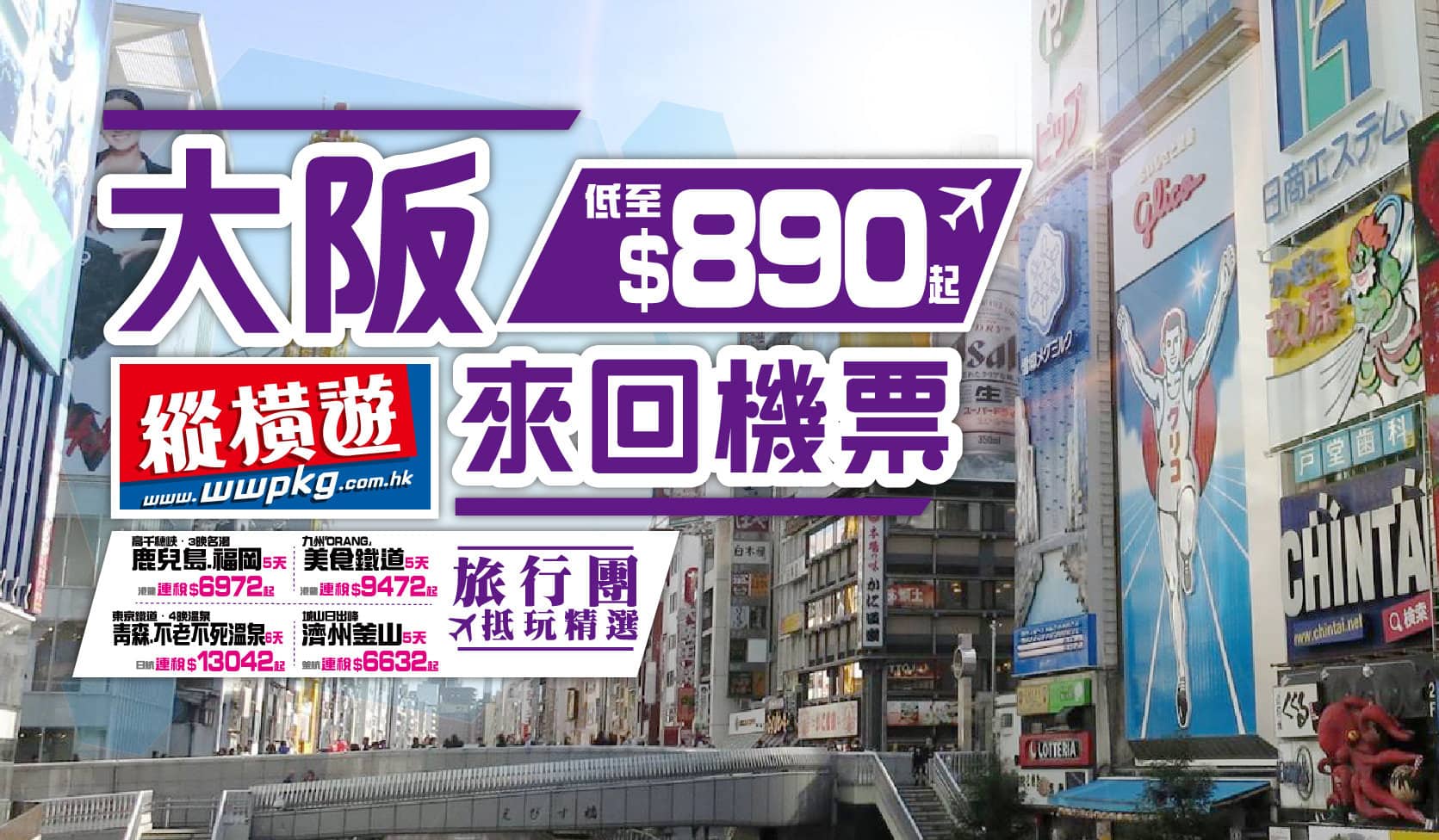 全線大阪機票優惠!港航、國泰、HK Express飛大阪只需$890起!精選日韓旅行團$5,999起! – 縱橫遊 WWPKG (優惠至10月4日)