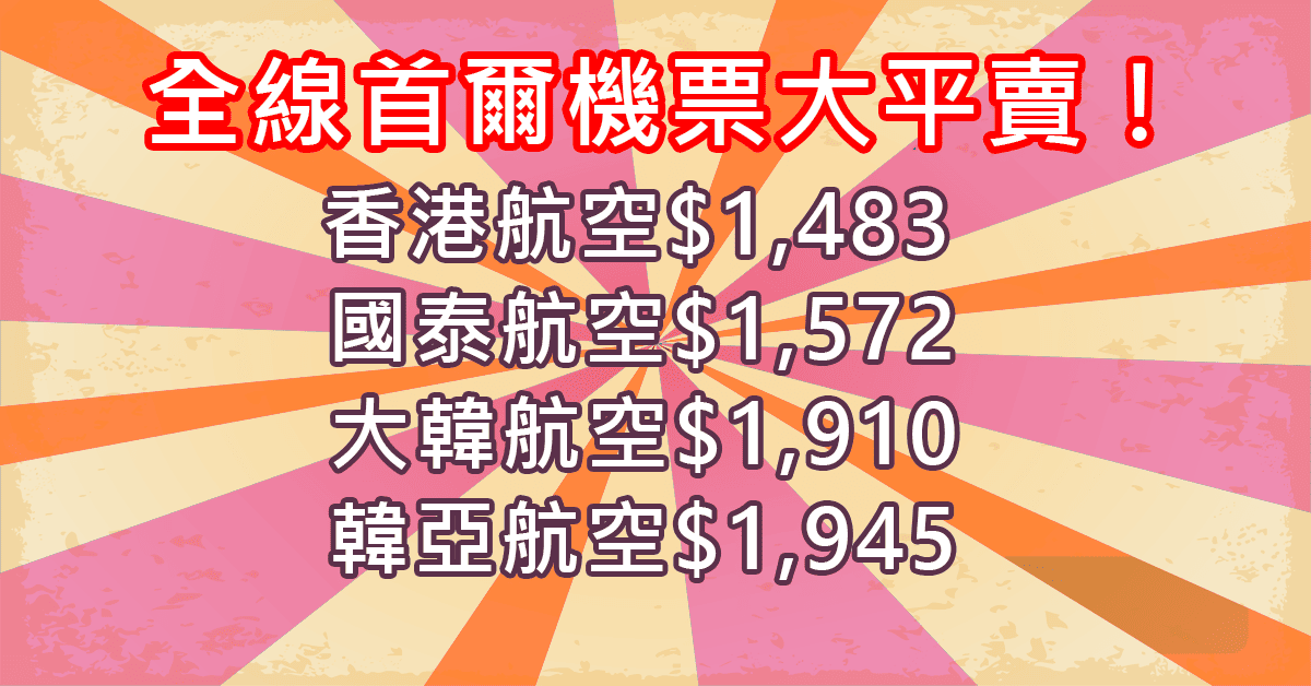 全線首爾機票大平賣!香港往返首爾只需$1,483(港航)、$1,572(國泰)、$1,910(大韓)、$1,945(韓亞) – Wefly.com.hk (優惠至10月5日)
