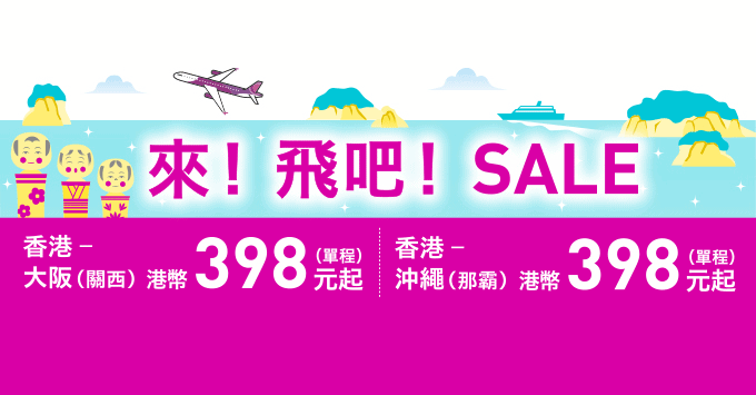 香港飛大阪、沖繩單程只需$398起